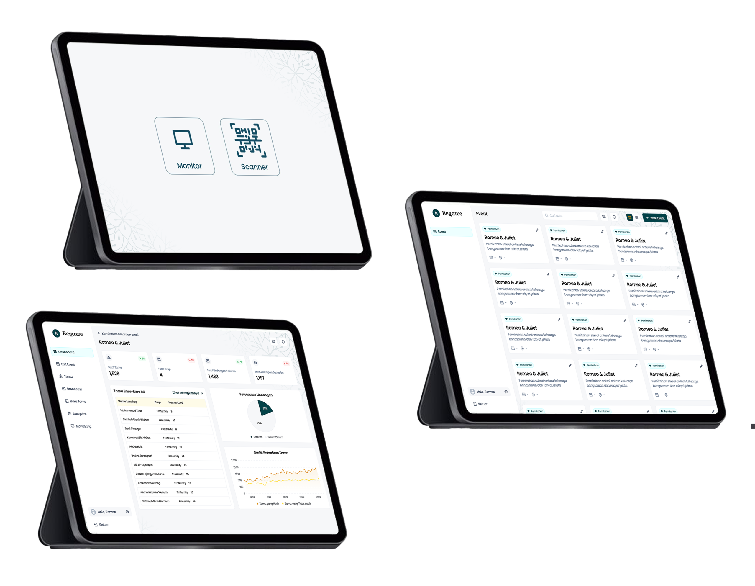 Report buku tamu bisa diterima saat acara selesai yang berisikan nama tamu, jam kehadiran dan selfi tamu. Dalam format PDF